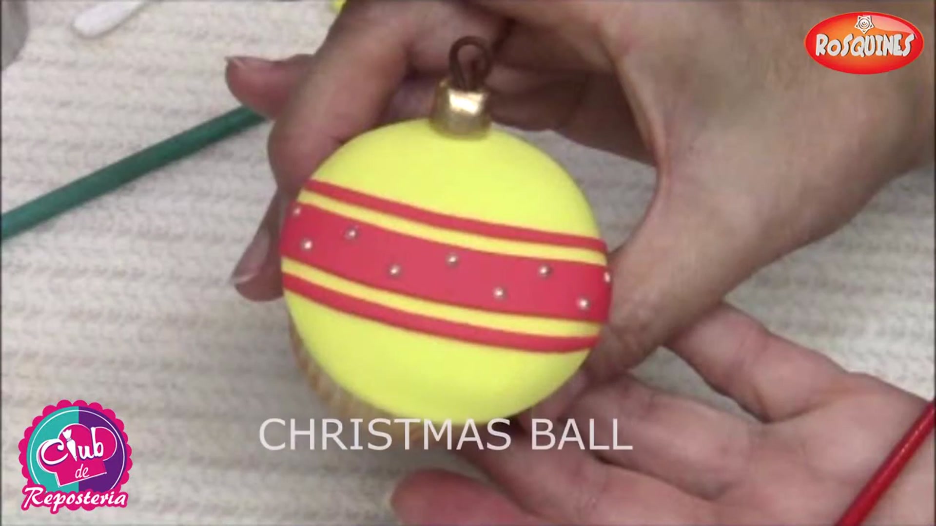 Sweet Tutorials by Rosa gives her step-by-step guide to decorate a fun and easy Christmas Ball Cupcake. You will need: Cupcakes Yellow and red fondant. Round cutter. X-acto Small brush/water Gold cake dust edible.