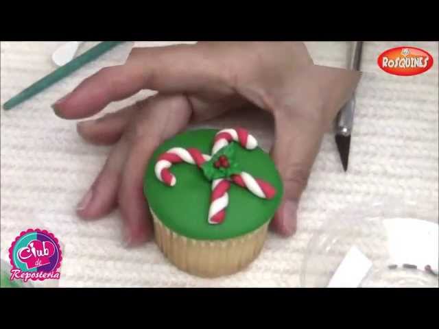 Sweet Tutorials by Rosa gives her step-by-step guide to decorate a fun and easy Christmas Candy Canes Cupcake. You will need: Cupcakes White, green and red fondant. X-acto Small brush/water Green royal icing Tip # 352 Red sprinkles