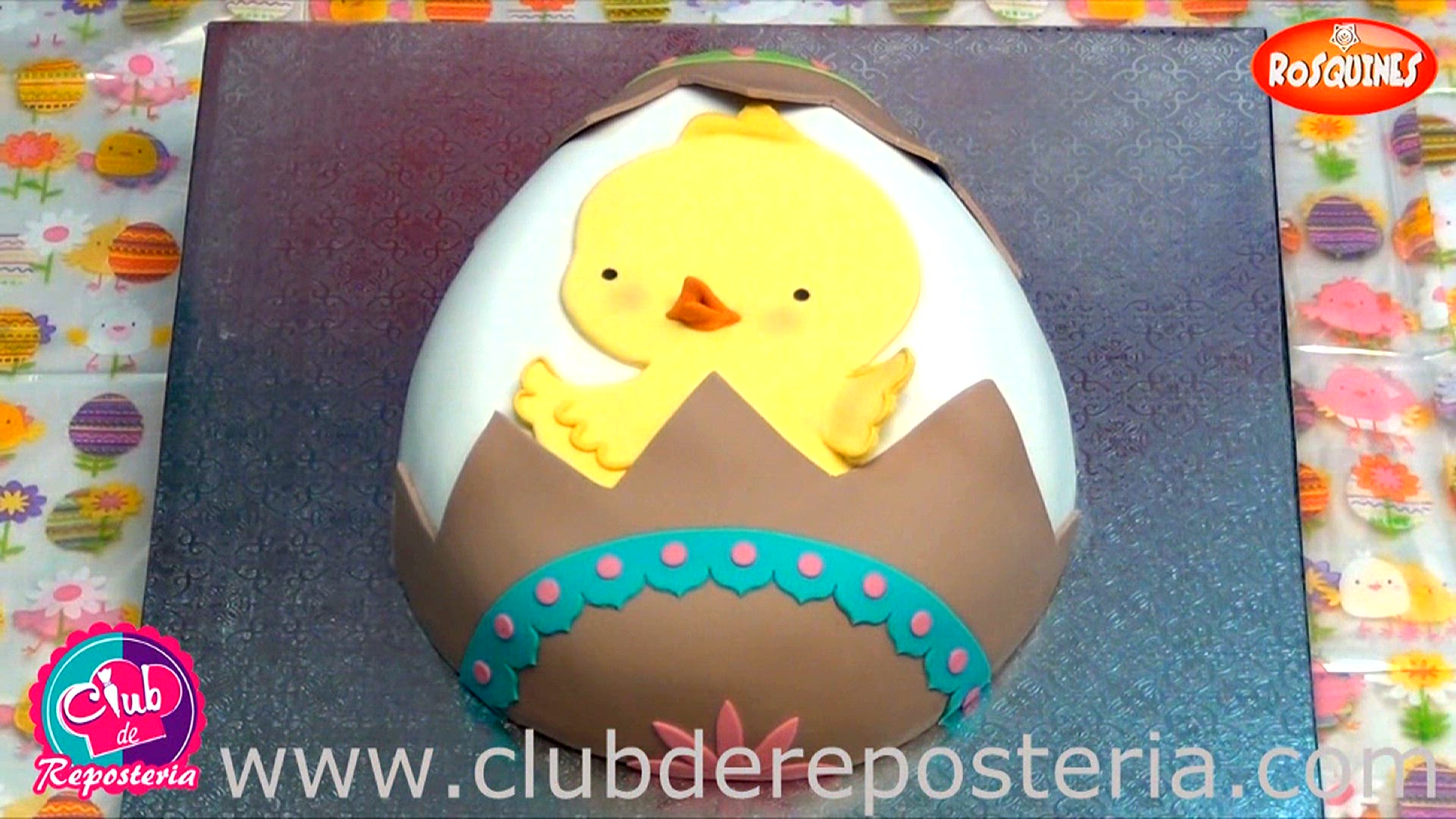 Beautiful cake to celebrate easter day. From a round cake it is cut out and shaped like an egg. It is covered and smoothed with white buttercream. Then it is covered with white fondant ½ centimeter thick. The design of this cake was inspired by a baby chick toy. The drawing of a baby chick is transferred to cardboard and used as a pattern to cut out in yellow fondant. The egg shell is made with brown fondant and the top is cut smaller than the bottom. Taking as a reference other models for Easter with fondant of different colors, decorate it as you like. Visit https://www.youtube.com/@RosaQuintero for more videos